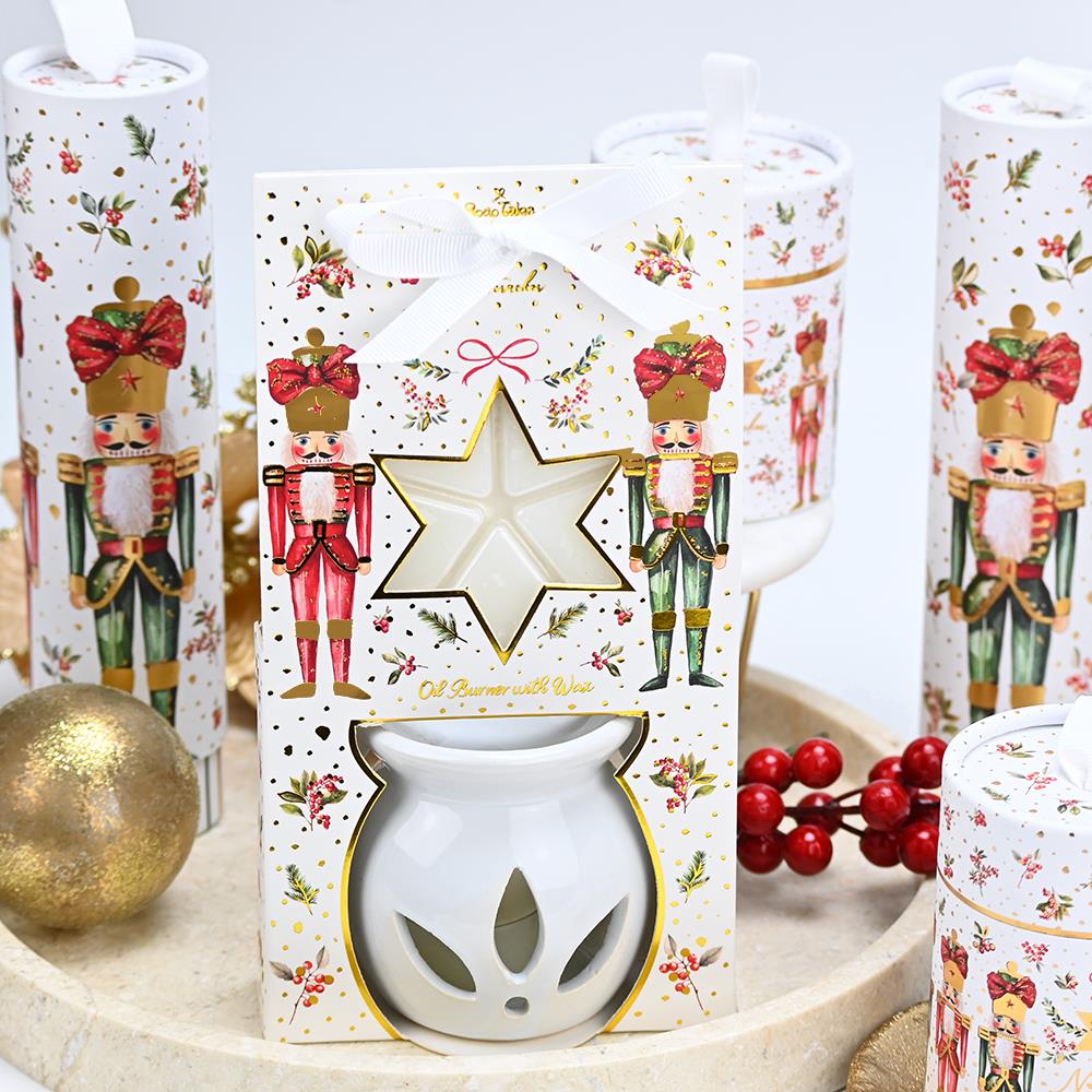 Φέρτε στο σπίτι σας τη μαγεία των Χριστουγέννων με το σετ Καρυοθραύστης. Περιλαμβάνει ένα κομψό κεραμικό oil burner και αρωματικά wax melts με άρωμα μήλο & κανέλα, που γεμίζουν τον χώρο με νότες ζεστασιάς, γλυκύτητας και εορταστικής θαλπωρής.
