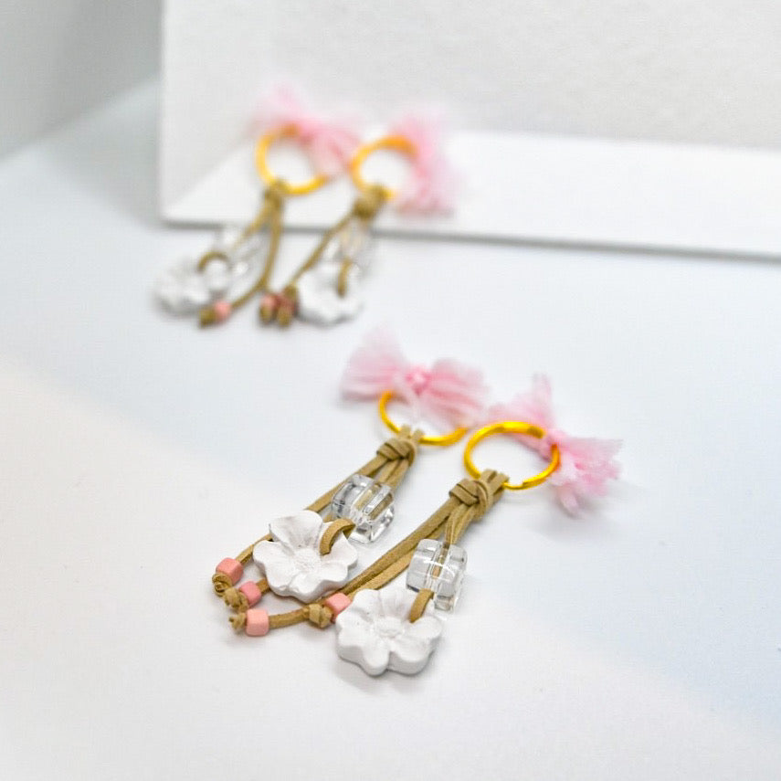 Μπρελόκ σουέτ με αρωματικό στοιχείο λουλούδι και επίχρυσο σταυρουδάκι.