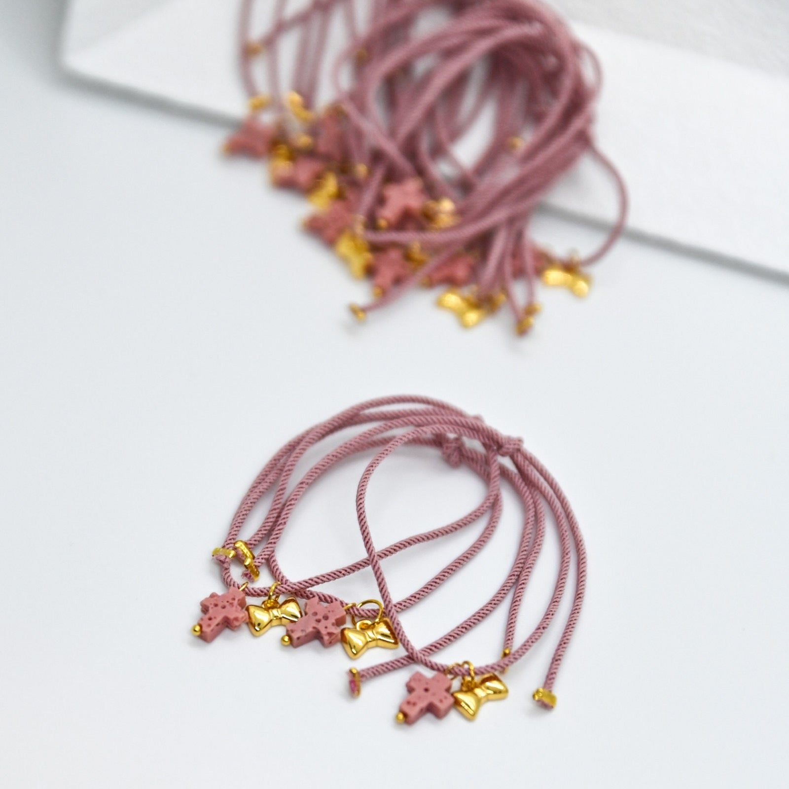 Βραχιόλι με μεταξωτό κορδόνι, επίχρυσο στοιχείο φιογκάκι 24Κ και λάβα σταυρό.