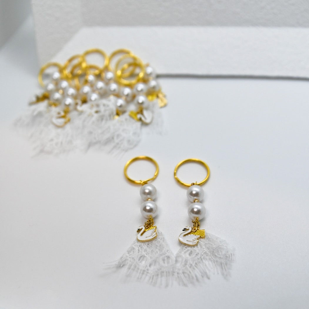 Μπρελόκ με πέρλες, επίχρυσο στοιχείο κύκνο σμάλτο ,επίχρυσο σταυρουδάκι και φούντα δαντέλα.
