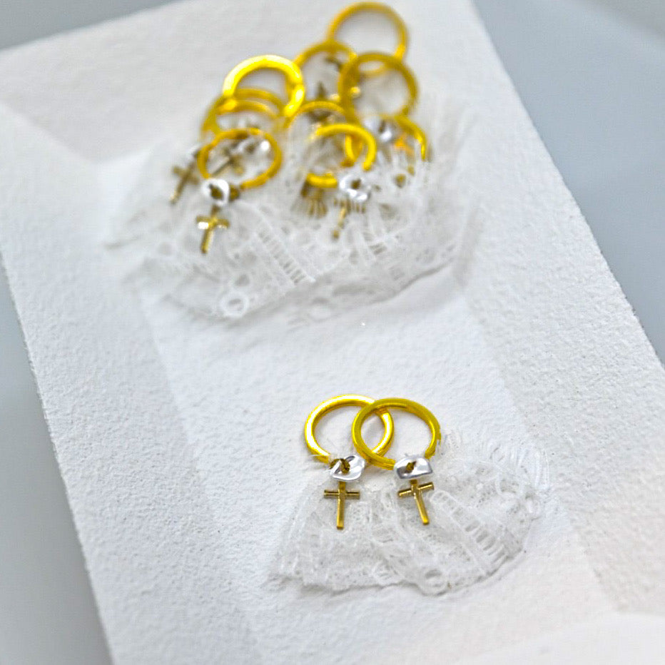 Μπρελόκ δαντέλα με πλέξι σταυρό και λεπτομέρεια μαργαριταράκι.