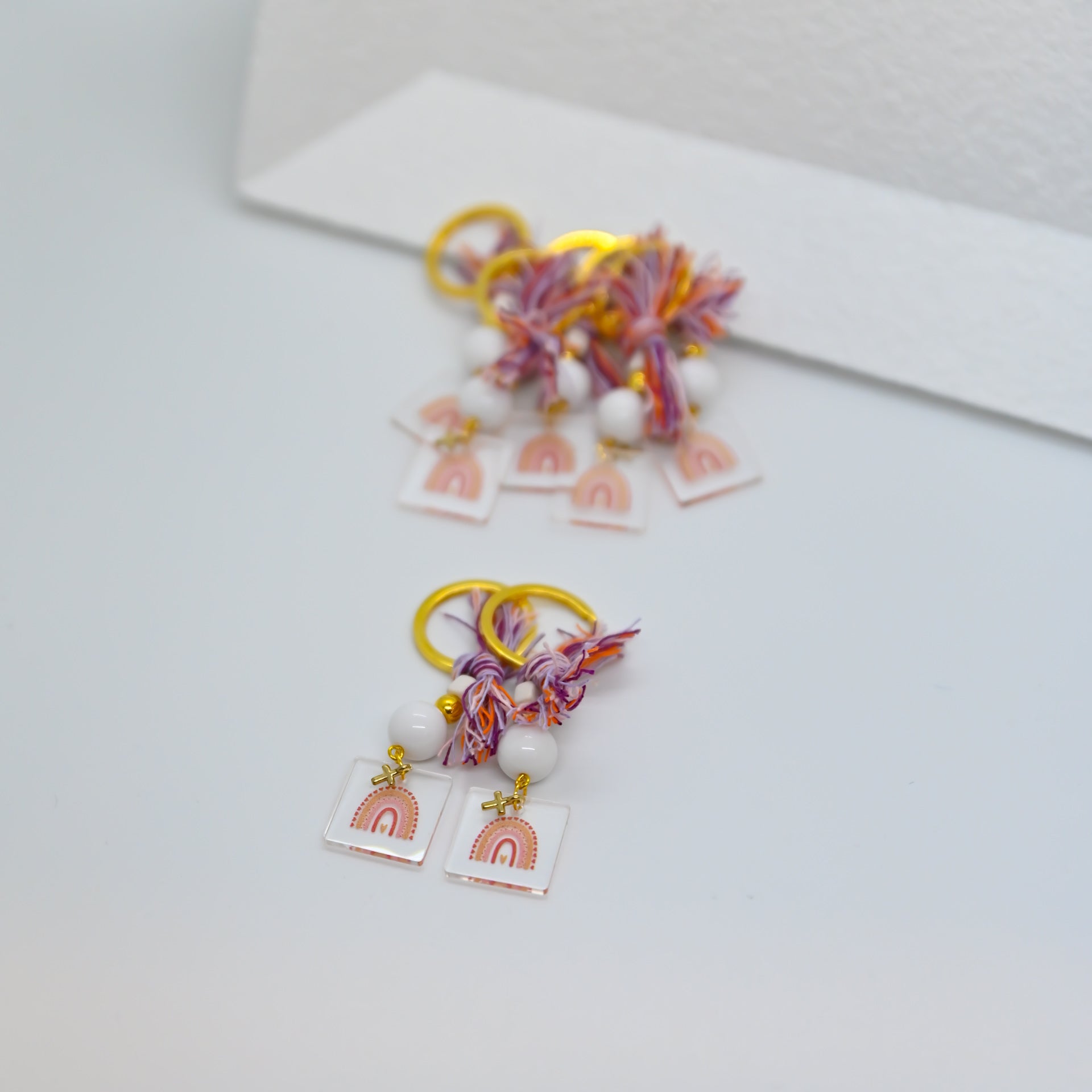 Μπρελόκ με επίχρυσο σταυρουδάκι και πλέξι με θεματικό το ουράνιο τόξο.(δυνατότητα προσωποποιημένου θεματικού)