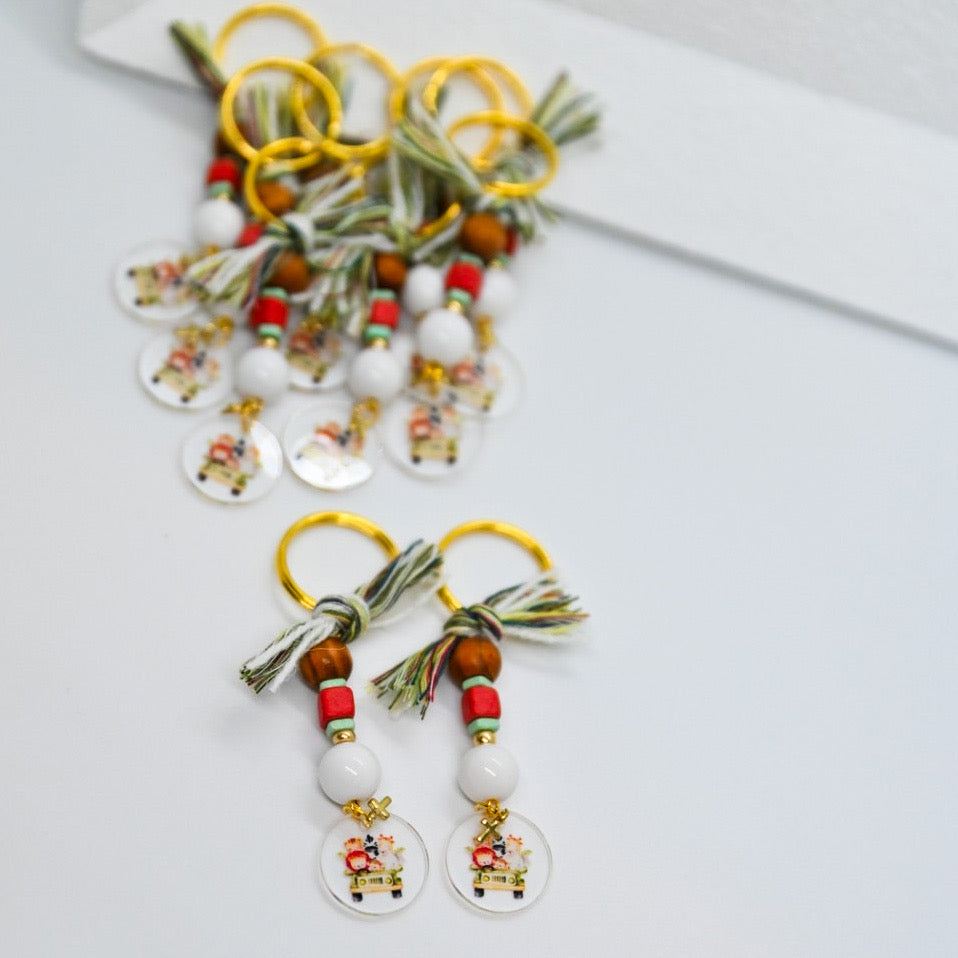 Μπρελόκ με επίχρυσο σταυρουδάκι και πλέξι με θέμα την ζούγκλα.(δυνατότητα προσωποποιημένου θεματικού.)
