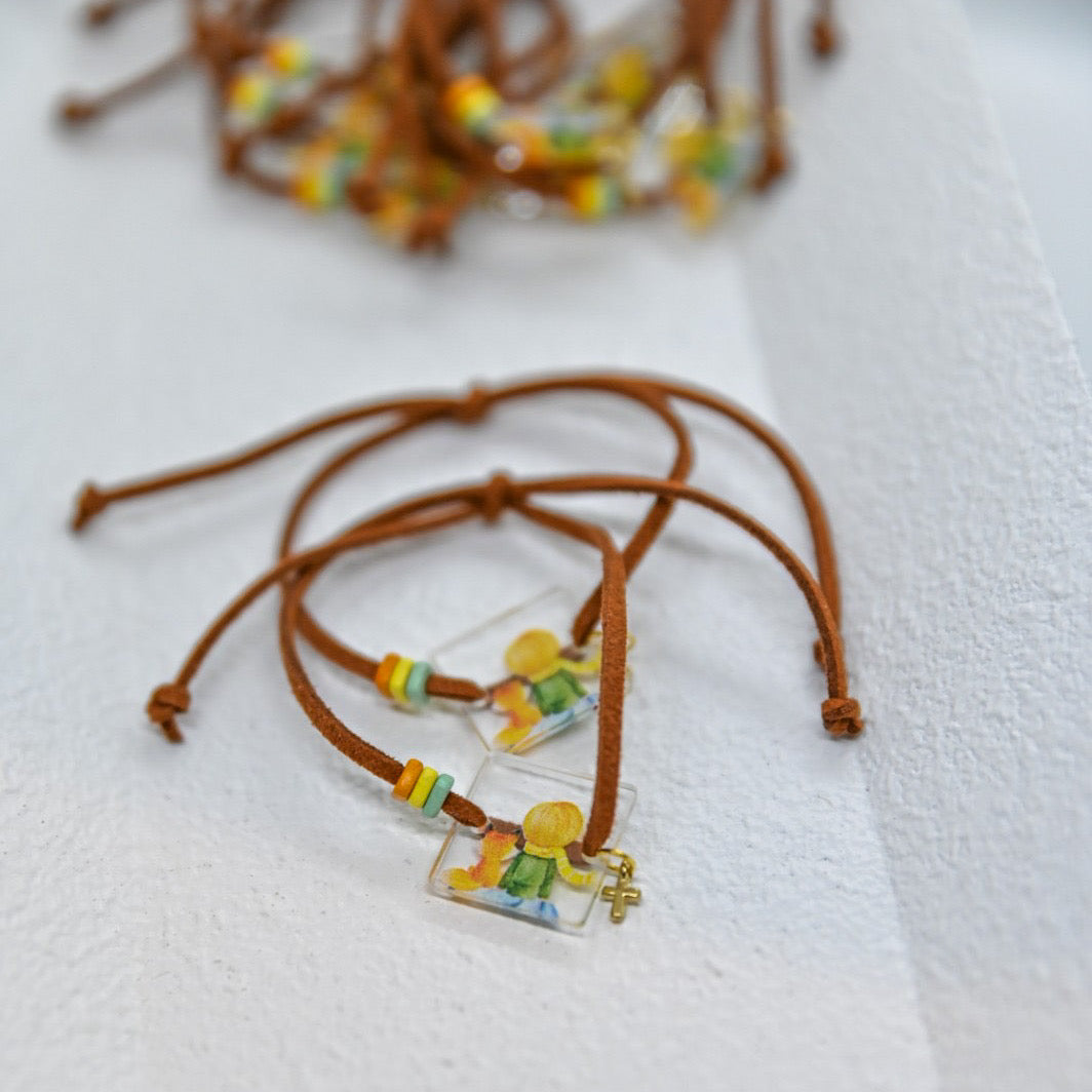 Βραχιόλι σουέτ με επίχρυσο σταυρουδάκι και πλέξι με θέμα τον μικρό πρίγκηπα. (δυνατότητα προσωποποιημένου θεματικού)
