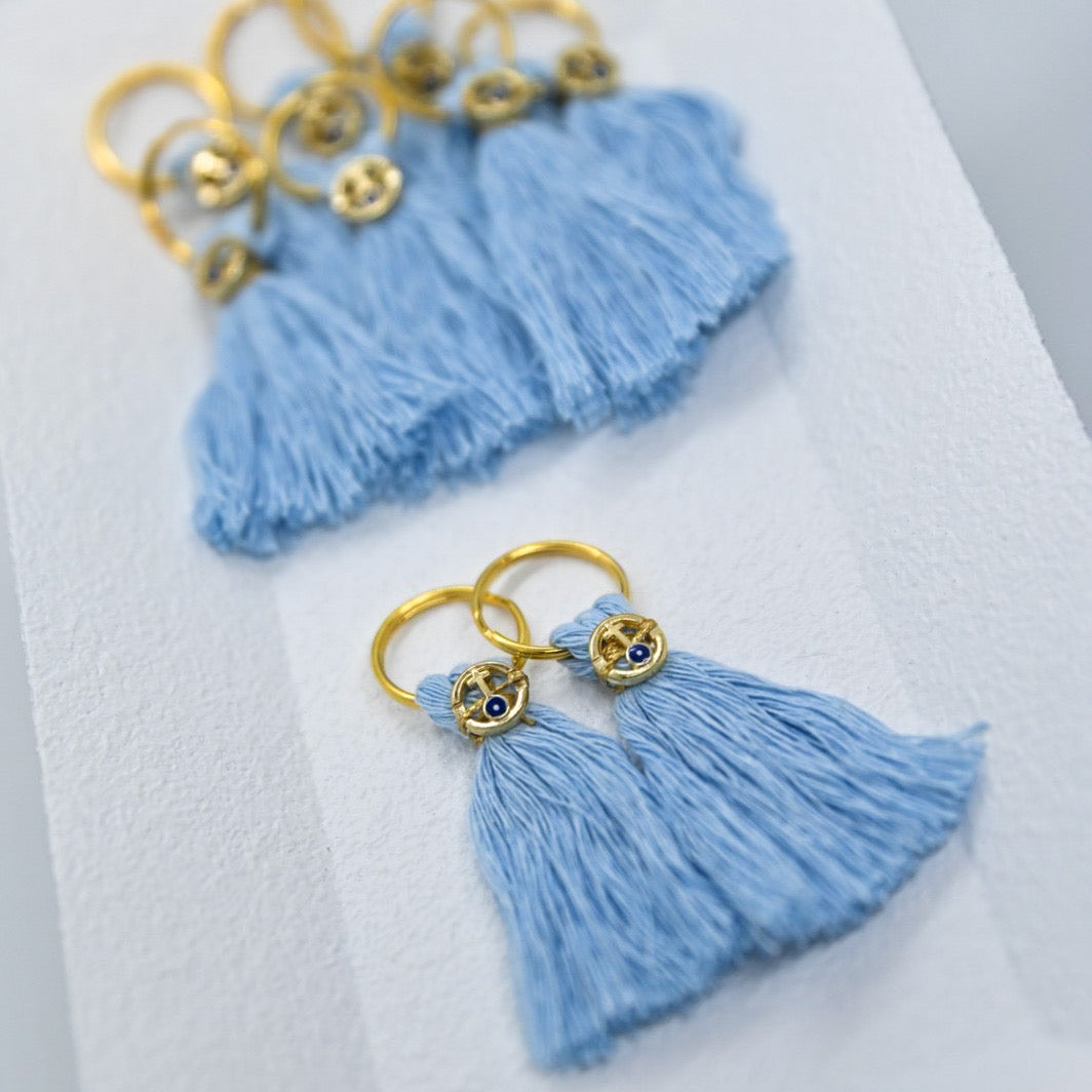Μπρελόκ φούντα με επίχρυσο σταυρό με σμάλτο ματάκι.