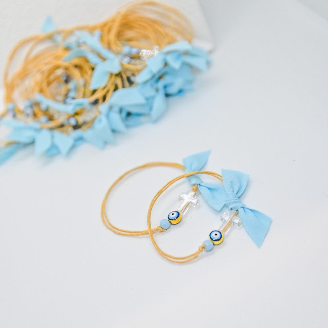 Βραχιόλι με διάφανο ακρυλικό σταυρό και επίχρυσο-ακρυλικό σμάλτο ματάκι.