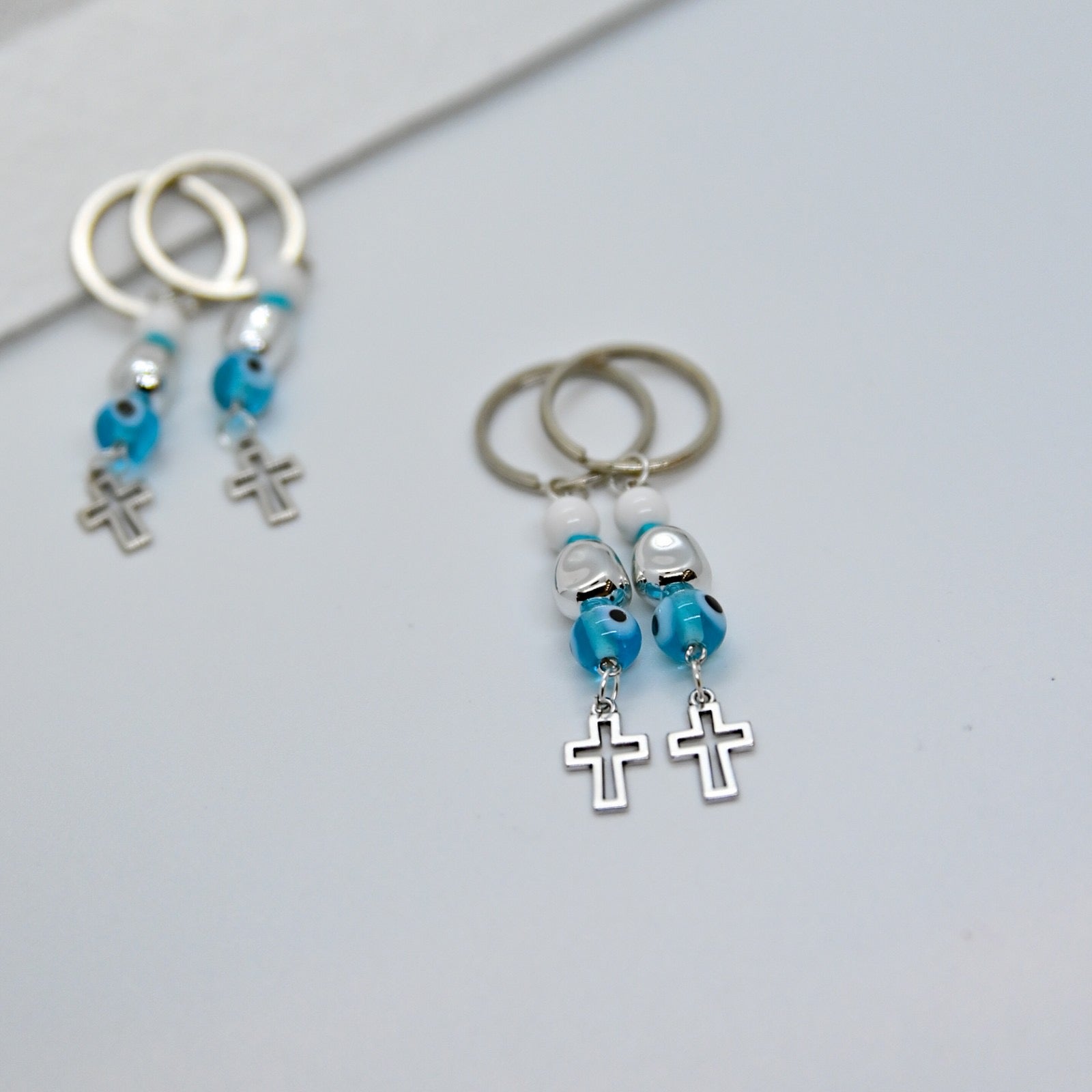 Μπρελόκ με γυάλινο μάτι και επάργυρο σταυρό.