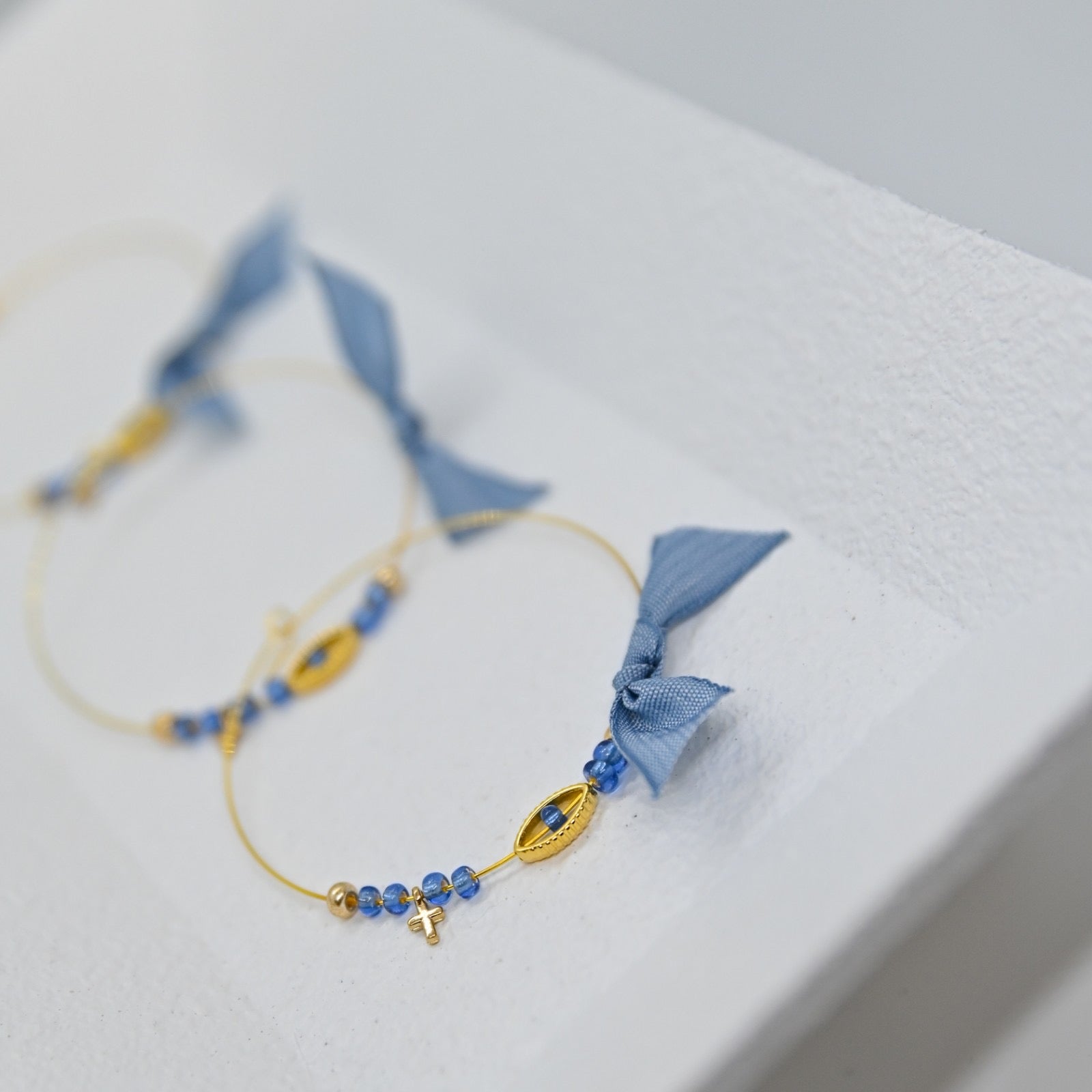 Βραχιόλι σύρμα με επίχρυσο ματάκι 24Κ και επίχρυσο σταυρουδάκι.