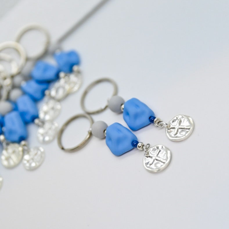 Μπρελόκ με χάντρα καουτσούκ και επάργυρο σταυρό.