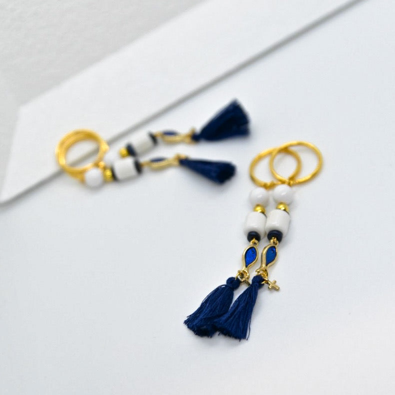 Μπρελόκ με επίχρυσο στοιχείο σμάλτο ψαράκι και επίχρυσο σταυρουδάκι.