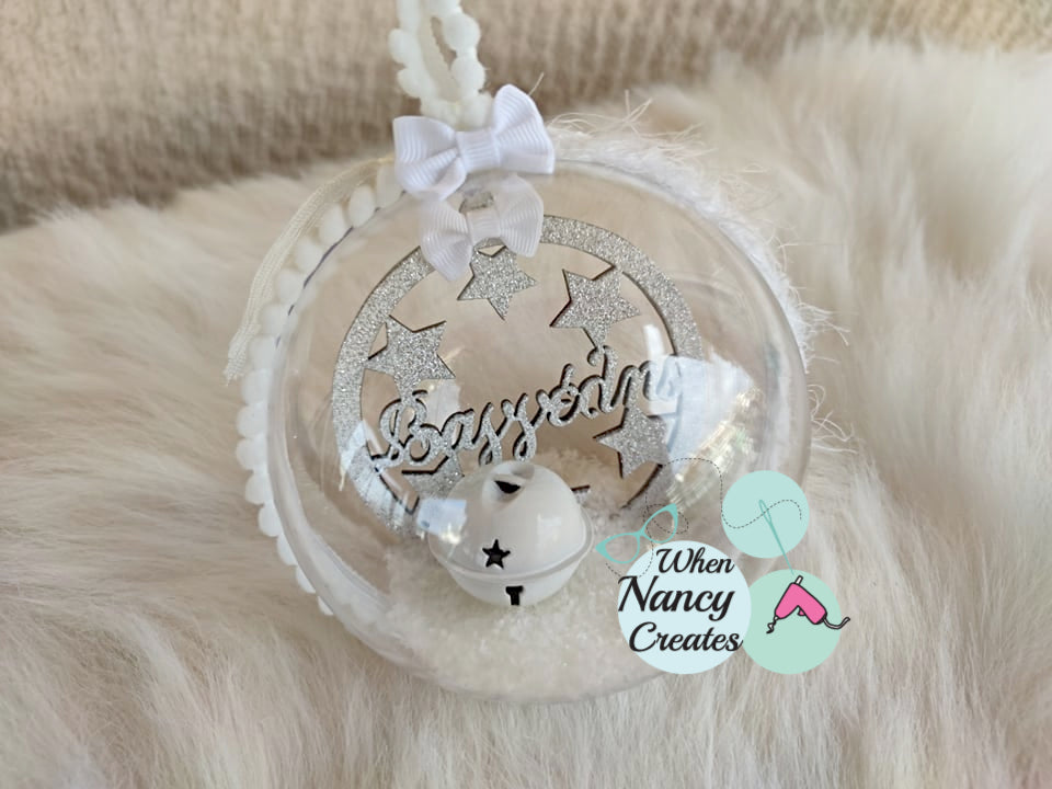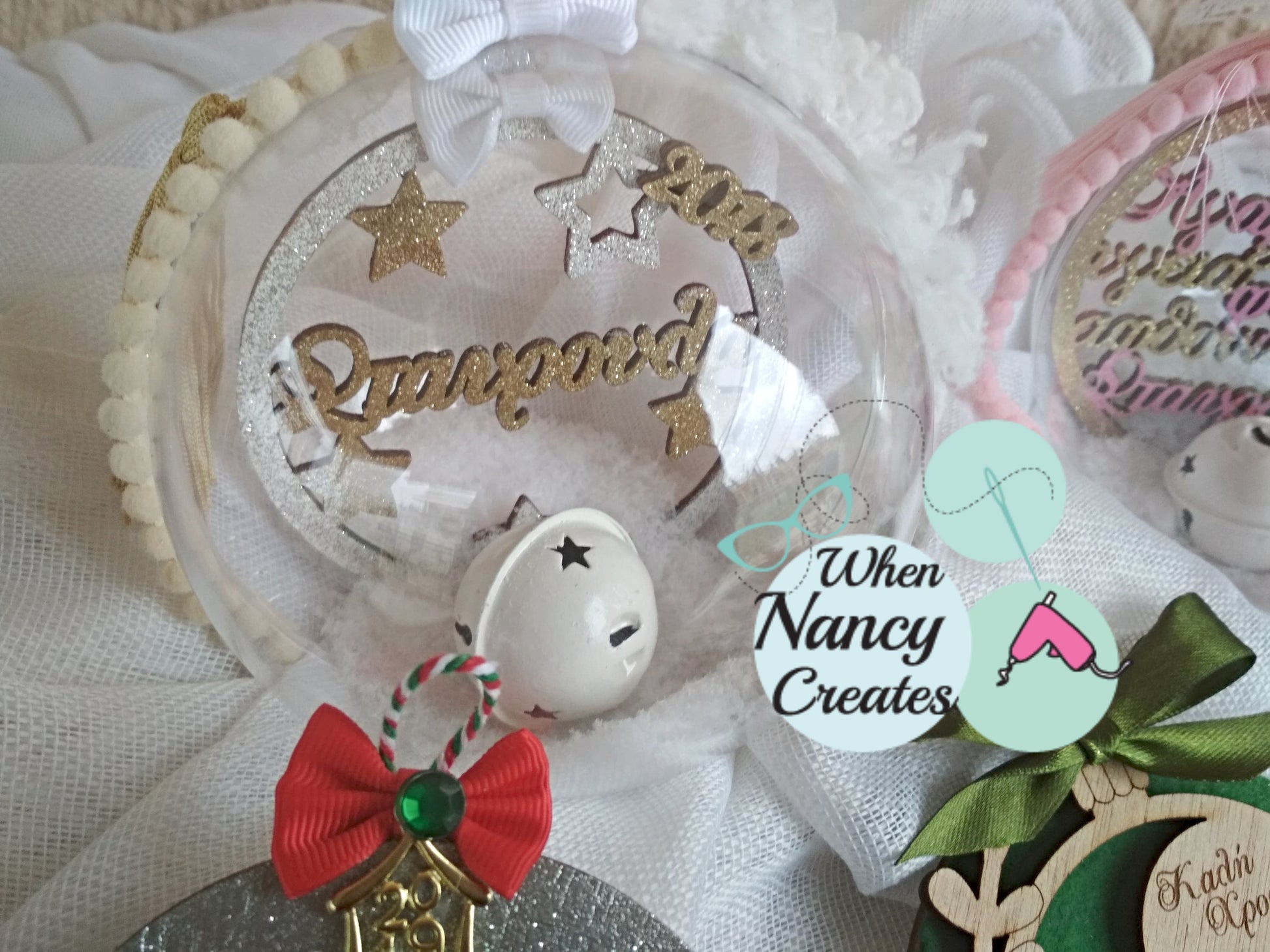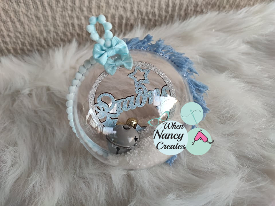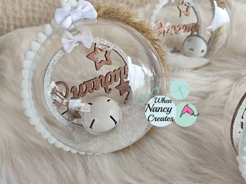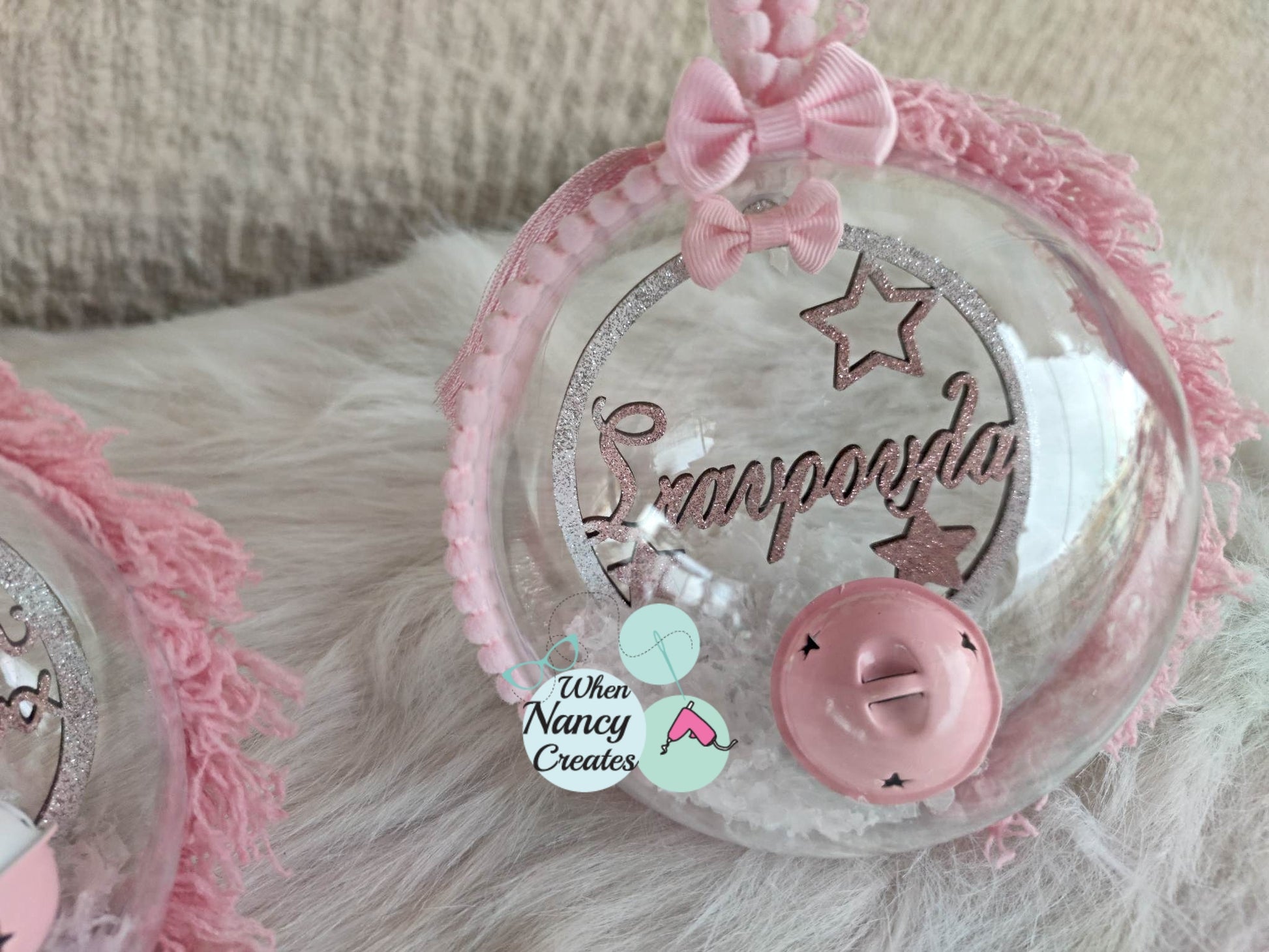 Plexiglass μπάλα για το δέντρο με όνομα, μεγάλο κουδούνι μέσα και χιόνι σε άπειρα χρώματα!