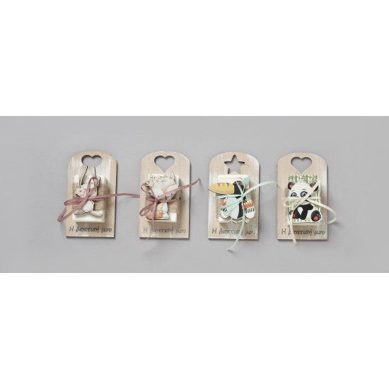 Μπομπονιέρα βάπτισης ξύλινή βάση με σαπουνάκι και φιγούρα Model:ΣΒΤ-233-226-227-228