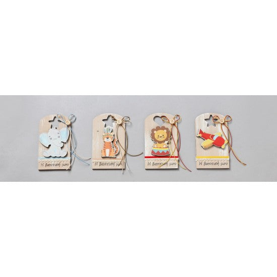 Μπομπονιέρα βάπτισης ξύλινή βάση με σαπουνάκι και φιγούρα με επιλογή ένα από τα 4 παρακάτω σχέδια