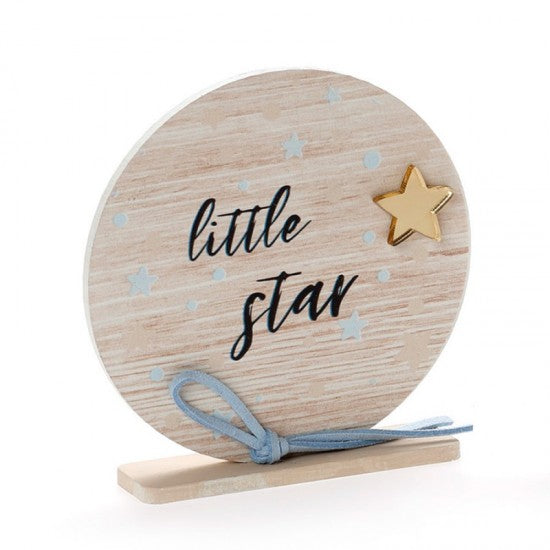 Μπομπονιέρα βάπτισης ξύλινο καδράκι σε στρογγυλό σχήμα πάνω σε βάση με αστέρι