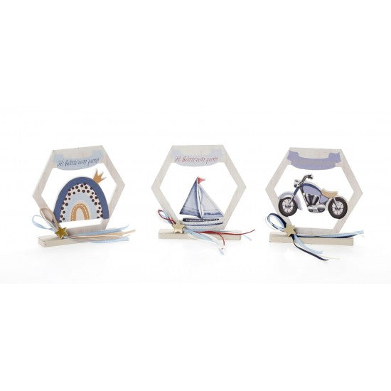 Μπομπονιέρα εξάγωνο σε βάση με επιλογή ένα από τα 3 σχέδια