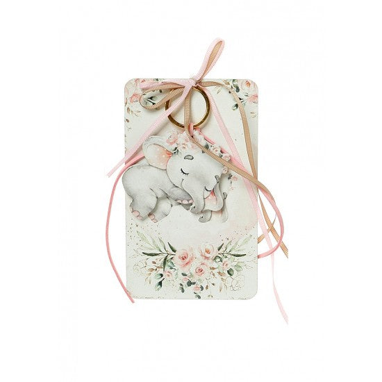 Μπομπονιέρα με ξύλινη πλάτη και μπρελόκ με σχέδιο ελεφαντάκι Model:Η-16