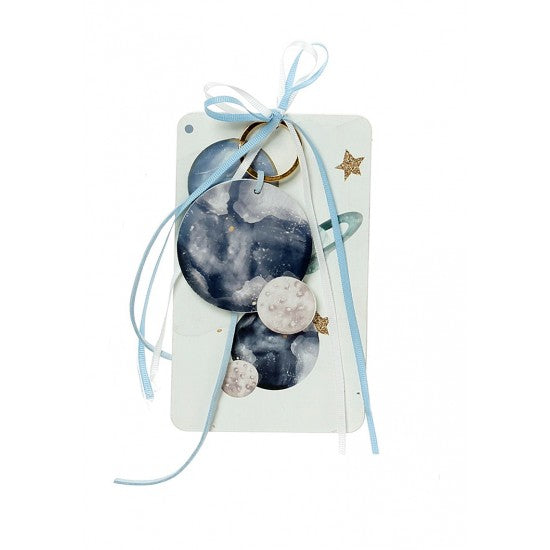 Μπομπονιέρα με ξύλινη πλάτη και μπρελόκ με σχέδιο πλανήτες Model:Η-8