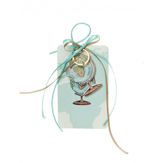 Μπομπονιέρα με ξύλινη πλάτη και μπρελόκ με σχέδιο Υδρόγειος