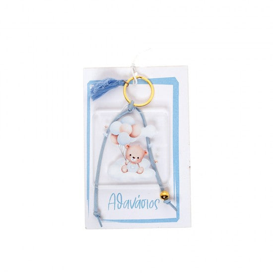 Μπομπονιέρα μπρελόκ απο πλέξιγκλας και χαρτάκι με θέμα αρκουδάκι Model:ΧΑΜ-35