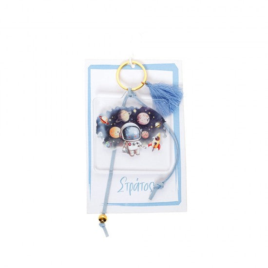 Μπομπονιέρα μπρελόκ απο πλέξιγκλας και χαρτάκι με θέμα διάστημα Model:ΧΑΜ-34