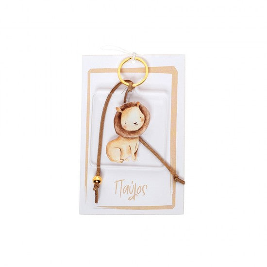 Μπομπονιέρα μπρελόκ απο πλέξιγκλας και χαρτάκι με θέμα λιονταράκι Model:ΧΑΜ-23
