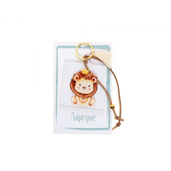 Μπομπονιέρα μπρελόκ απο πλέξιγκλας και χαρτάκι με θέμα λιονταράκι Model:ΧΑΜ-24