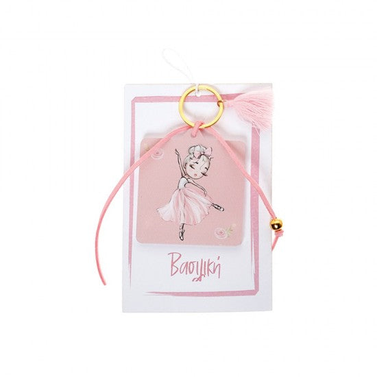 Μπομπονιέρα μπρελόκ απο πλέξιγκλας και χαρτάκι με θέμα μπαλαρίνα