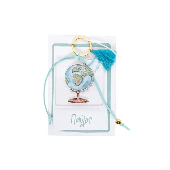 Μπομπονιέρα μπρελόκ απο πλέξιγκλας και χαρτάκι με θέμα υδρόγειος Model:ΧΑΜ-30