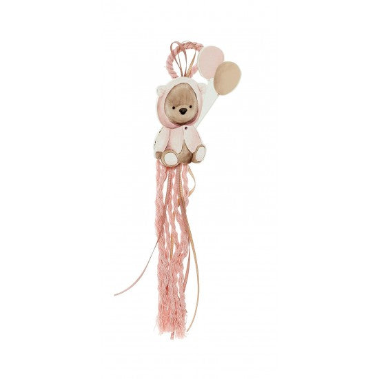 Μπομπονιέρα ξύλινη κρεμαστή με θέμα αρκουδάκι