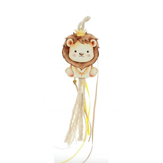 Μπομπονιέρα ξύλινη κρεμαστή με θέμα λιονταράκι