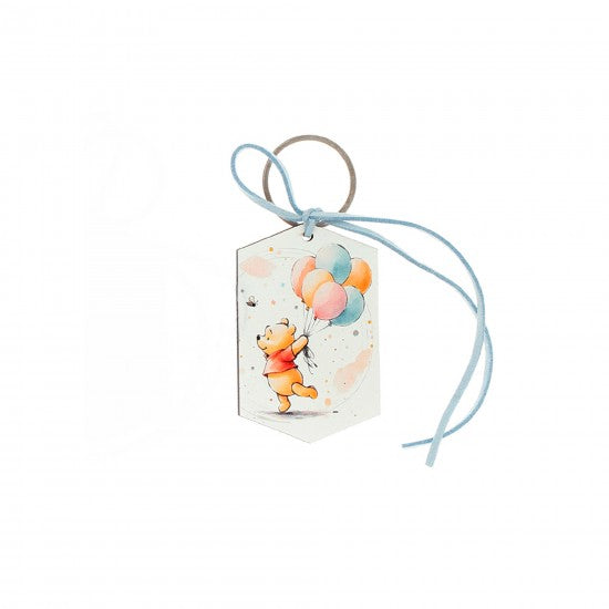 Μπομπονιέρα ξύλινο μπρελόκ με χαριτωμένο σχέδιο γουίνι που πετάει με πολύχρωμα μπαλόνια. Ιδανικό για βάπτιση και παιδικά δωράκια.