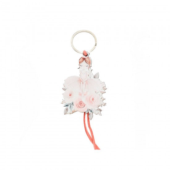 Μπομπονιέρα χειροποίητο ξύλινο μπρελόκ σε ρομαντικό σχέδιο με μπαλαρίνα και τριαντάφυλλα. Ιδανικό για βάπτιση, δωράκι γενεθλίων ή ιδιαίτερο αξεσουάρ.