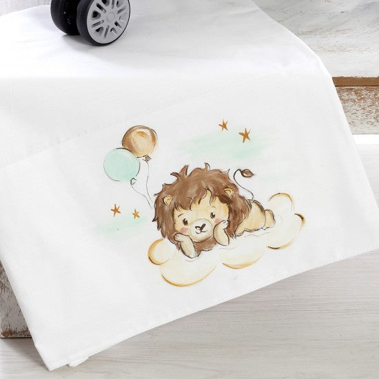 ✔ Βαλίτσα τροχήλατη ζωγραφισμένη στο χέρι, με γλυκά ζωάκια όπως λιονταράκι, καμηλοπάρδαλη και ελεφαντάκι, συννεφάκια και χαρούμενα μπαλόνια. Στολισμένη με τούλια, κορδέλες και σχοινιά. (Διαστάσεις: 57cm x 40cm x 22cm)