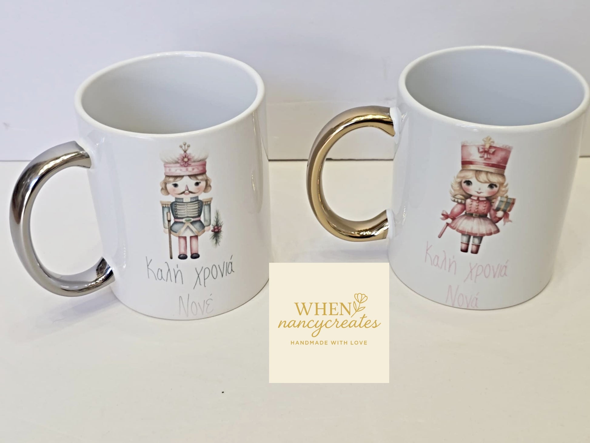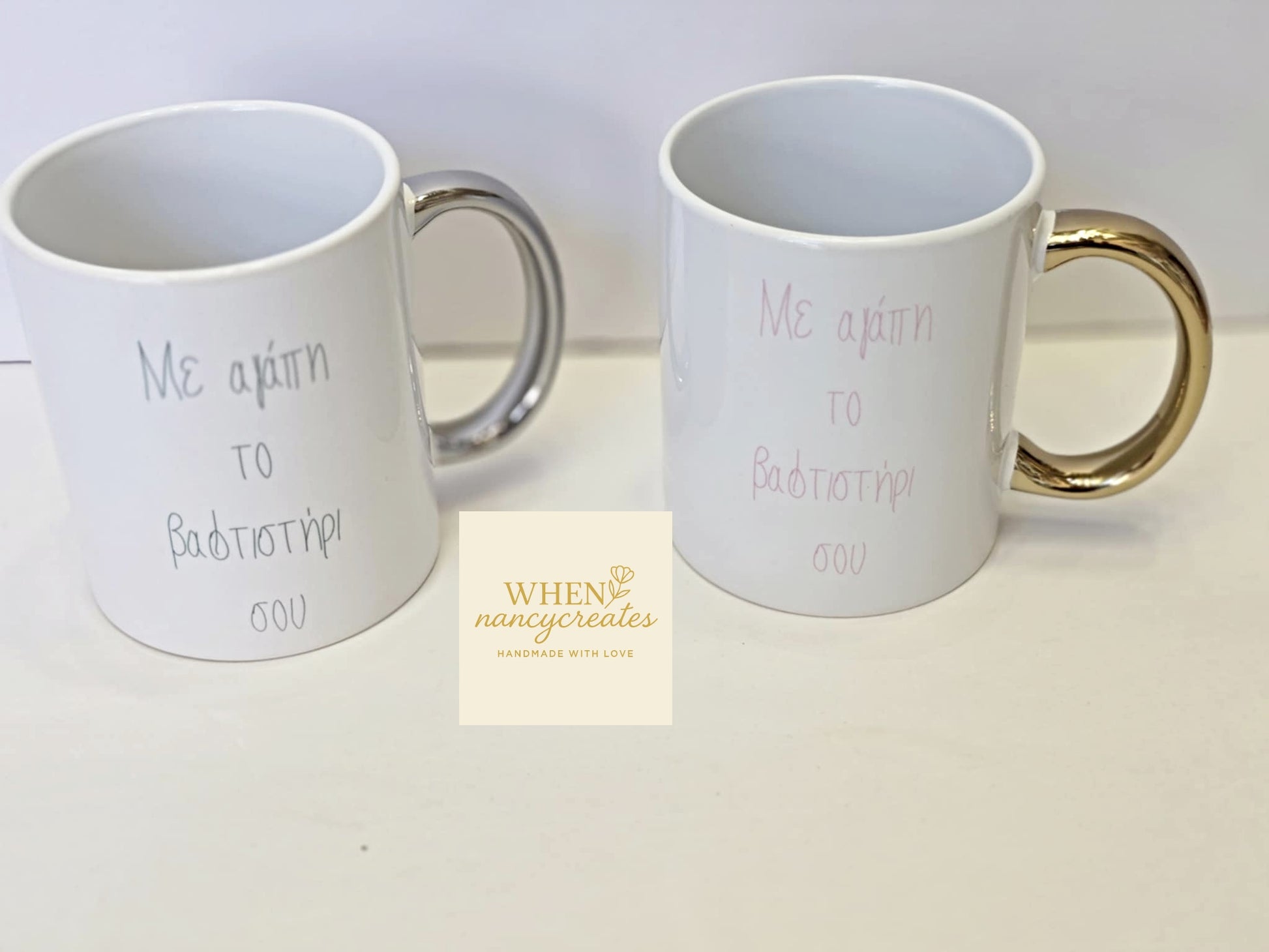 Κούπες με χρυσό και ασημί χερούλι για τον αγαπημένο σας νονό και νονά