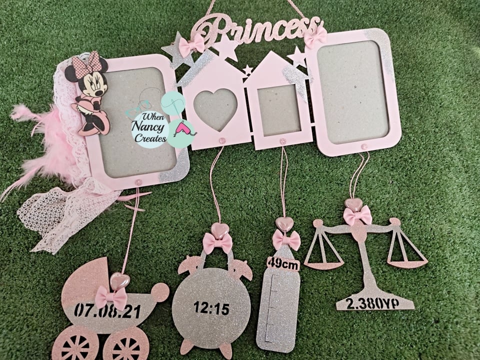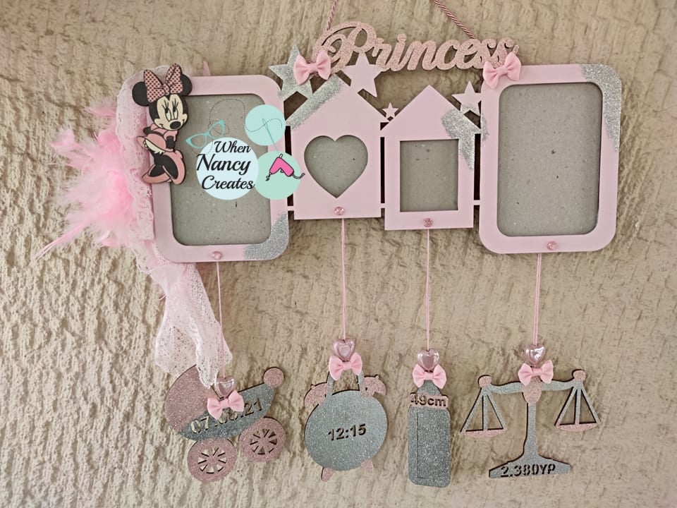 Τετραπλή κορνίζα με φωτογραφίες και στοιχεία γέννησης με θέμα μίνυ μάους