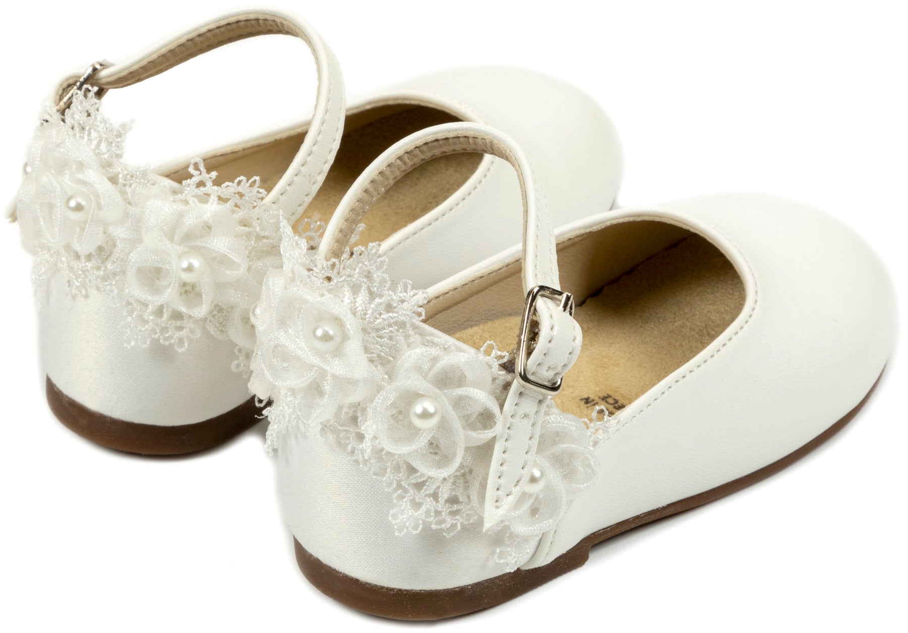 Δερμάτινο Γαλλικό Γοβάκι με Διακοσμημένη Φτέρνα απο Chiffon Λουλούδια από Συνθετικό Δέρμα και Υφασμα σε Λευκό χρώμα