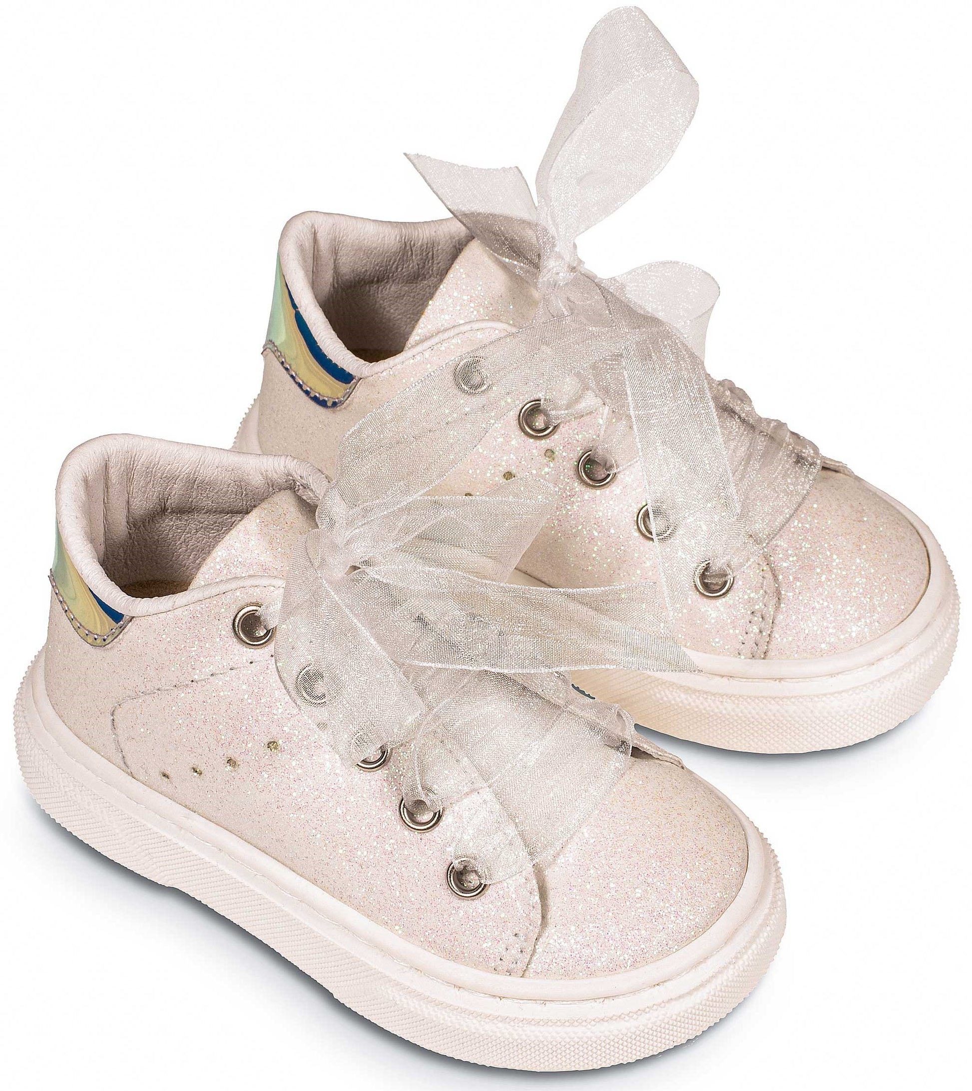 Δετό Σνίκερ απο Γκλίτερ Ύφασμα Δέσιμο με Κορδέλα Οργάντζας σε Λευκό Χρώμα