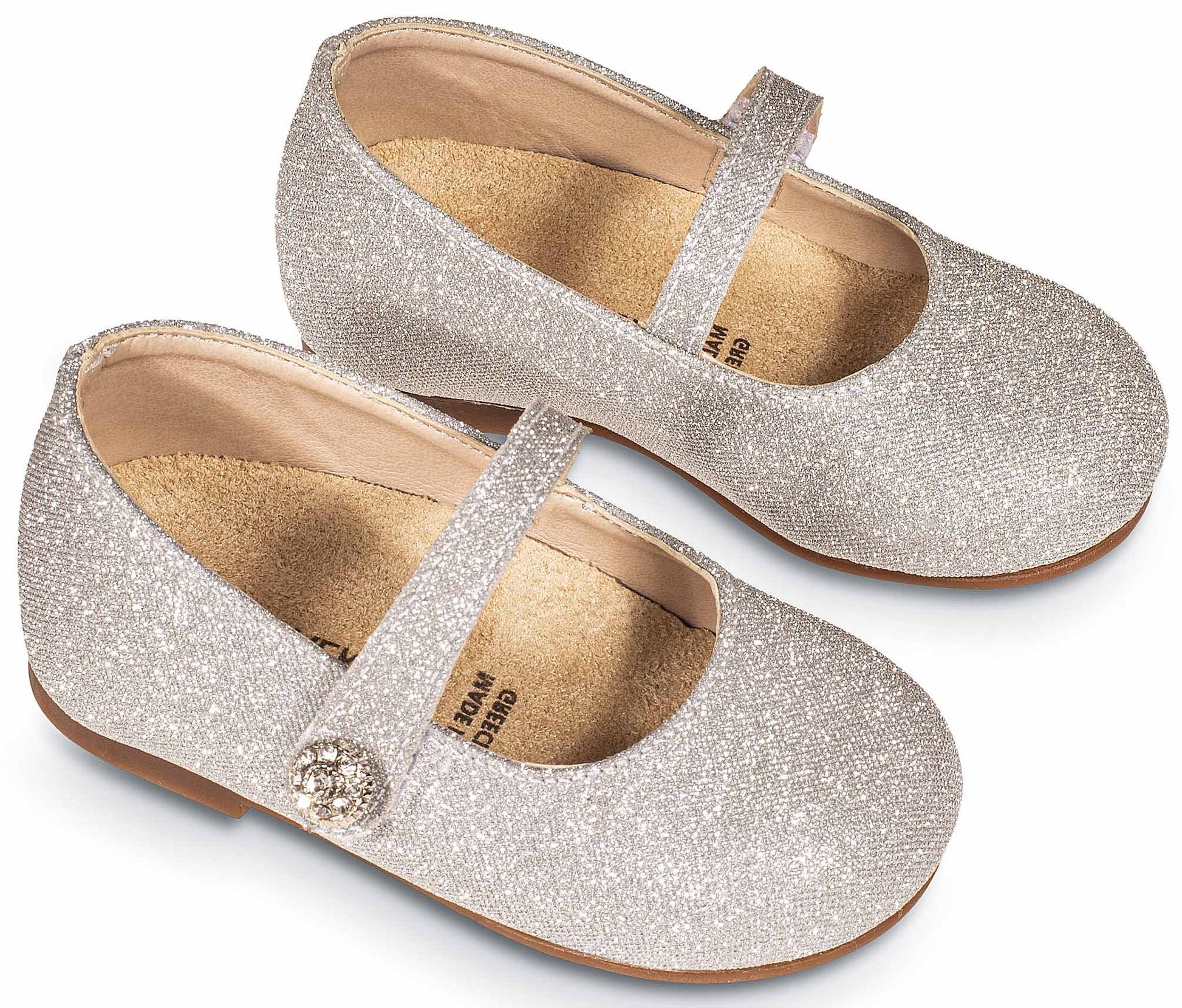 Γοβάκι απο Μεταλλιζέ Ύφασμα με Στρασένιο Κουμπάκι μονή Μπαρέτα σε Ασημί Χρώμα