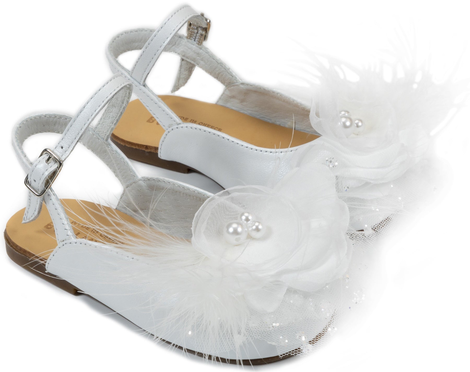 Δερμάτινο Σαμπό Διακοσμημένο με Χειροποίητο Chiffon Λουλούδι από Δέρμα Πέρλα σε Εκρού Χρώμα EXC.5772