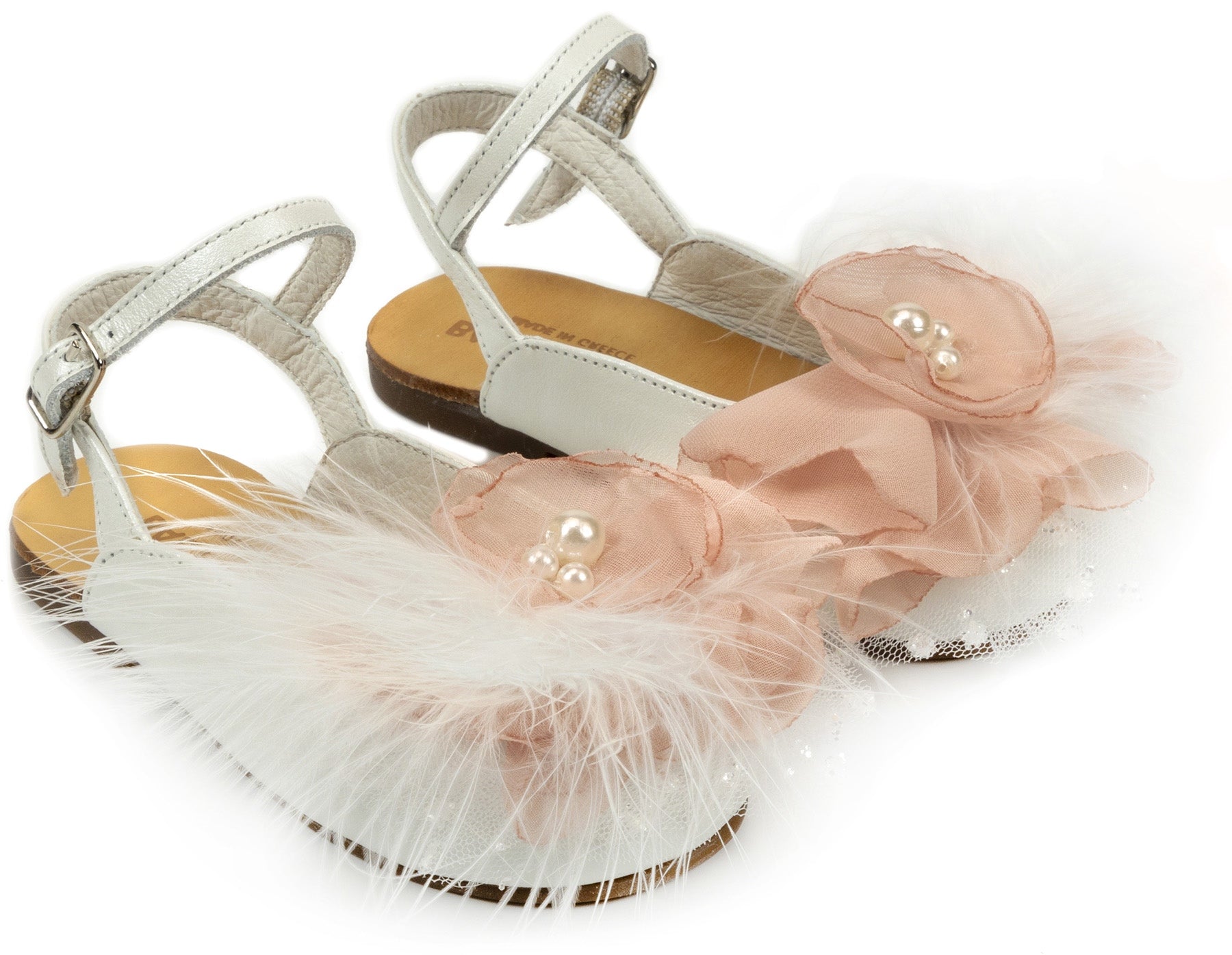 Δερμάτινο Σαμπό Διακοσμημένο με Χειροποίητο Chiffon Λουλούδι από Δέρμα Πέρλα σε Εκρού Ροζ Χρώμα EXC.5772