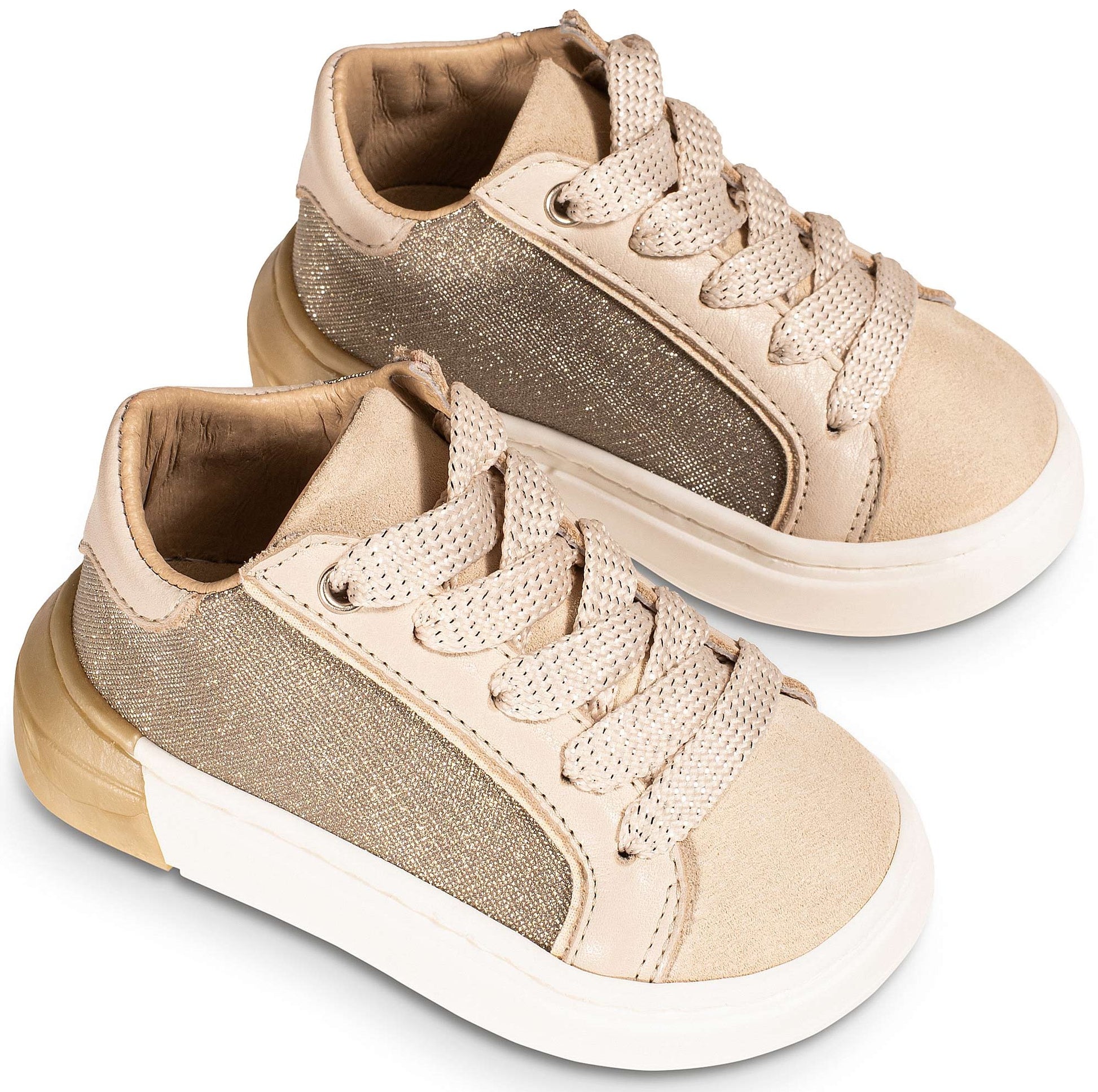 Δετό Σνίκερ απο 'Υφασμα και Δέρμα σε Πλατίνα Χρώμα EXC.5850