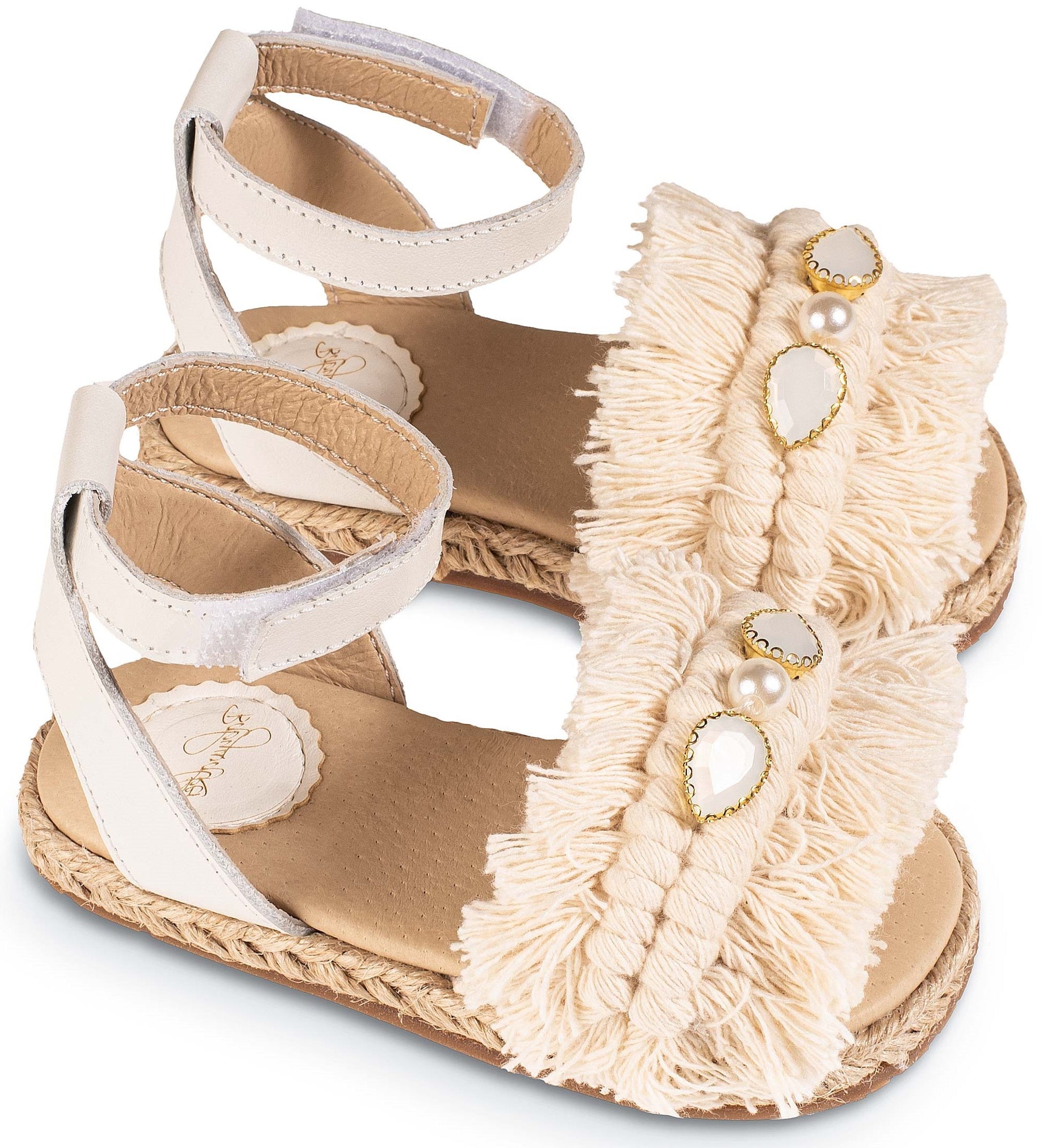 Δερμάτινο Πέδιλο Εσπαντρίγια με Χειροποίητο Διακοσμητικό Μακραμέ σε Εκρού χρώμα EXC.5855