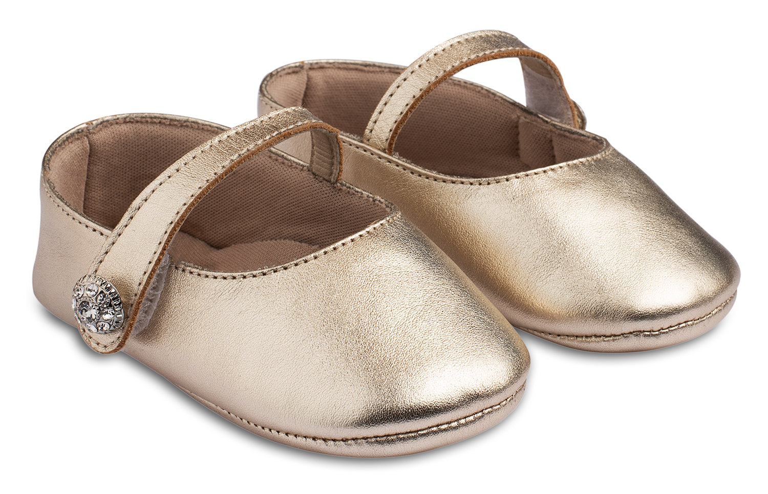 Δερμάτινο Γοβακι Μονή Μπαρέτα με Στρασένιο Κουμπακι σε Χρυσό Χρώμα MI1619