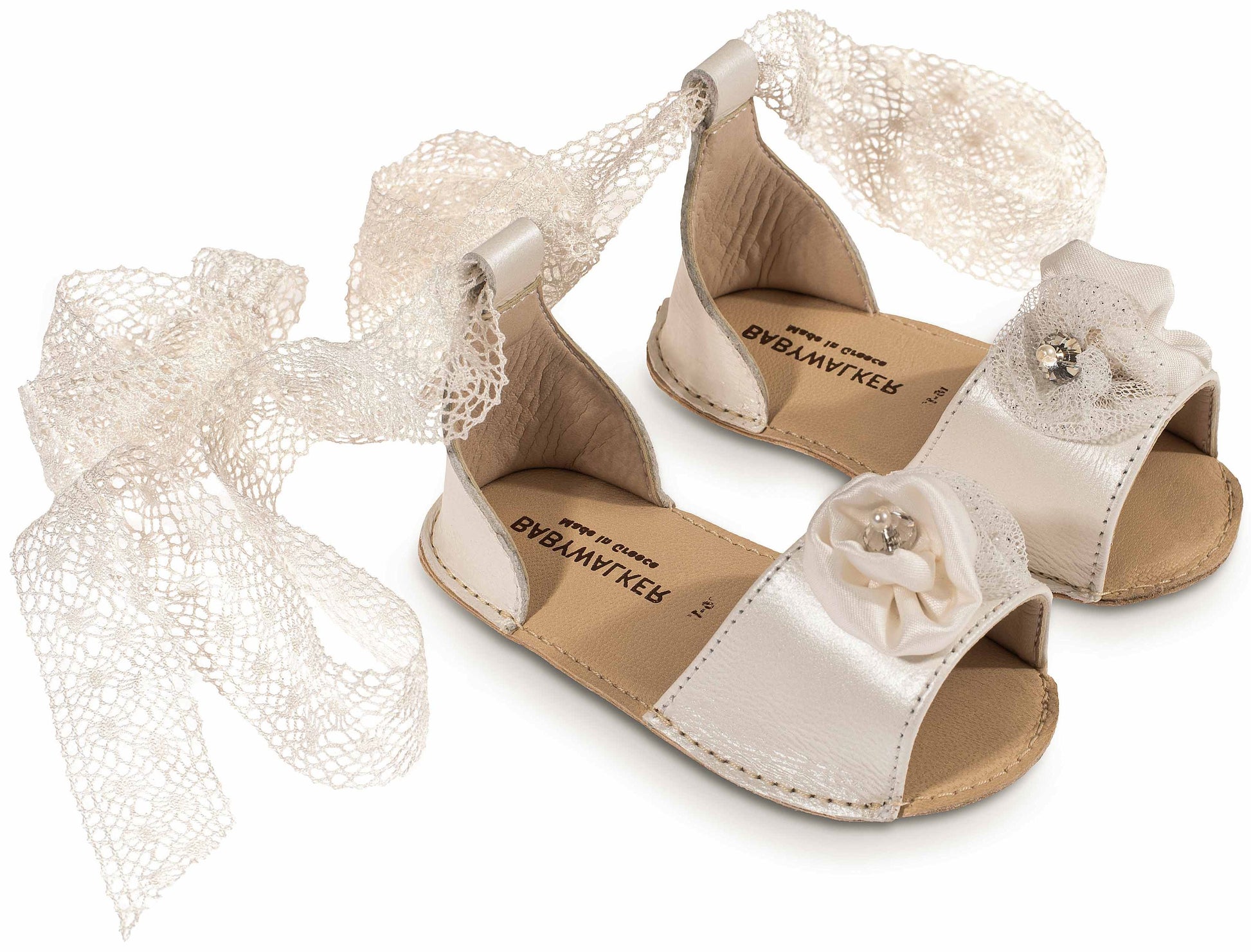 Δερμάτινο Δετό Pip Toe με Χειροποίητο Διακοσμητικό με Λουλούδια σε Εκρού Χρώμα MI1640