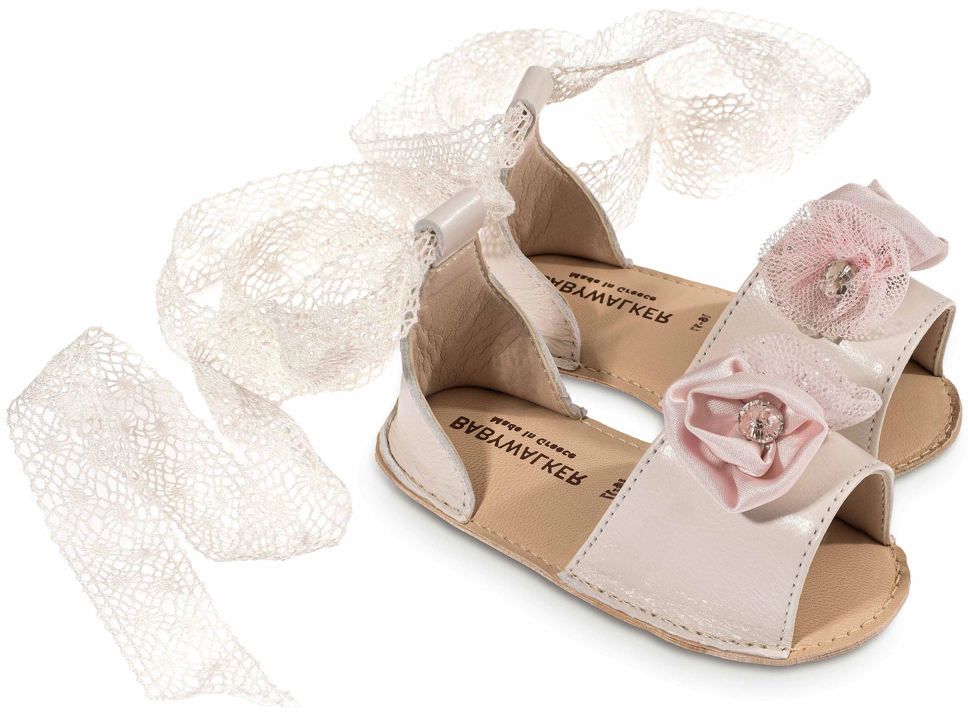 Δερμάτινο Δετό Pip Toe με Χειροποίητο Διακοσμητικό με Λουλούδια σε Εκρού Ροζ Χρώμα MI1640