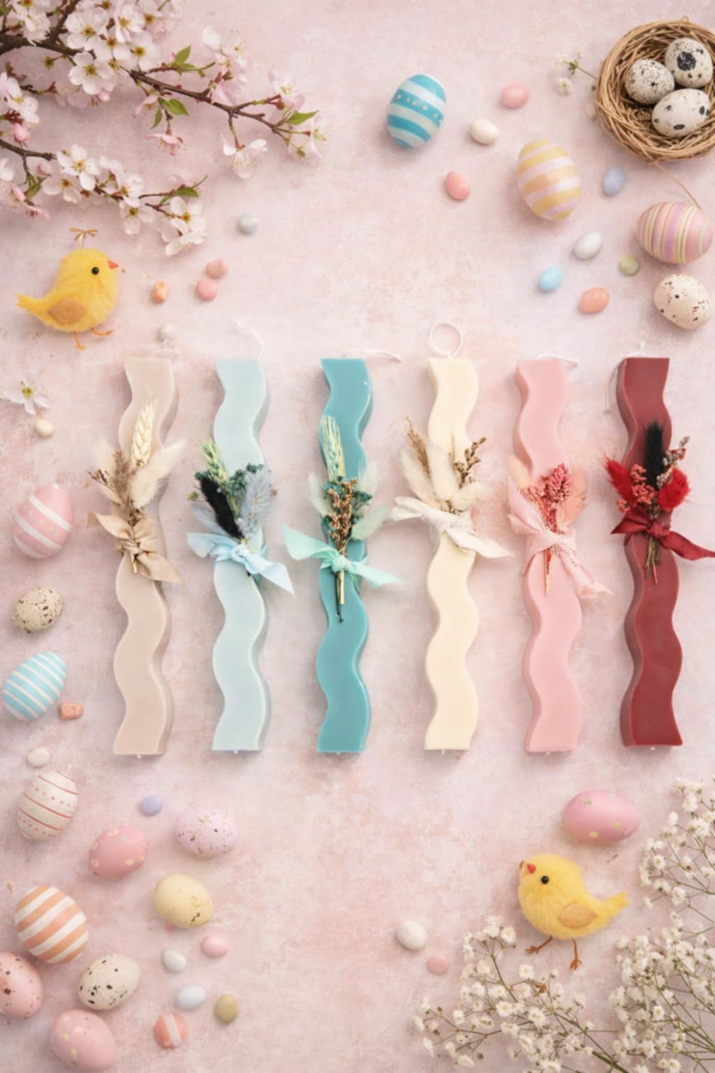 Μετά την Ανάσταση, η λαμπάδα μπορεί να σπάσει σε κομμάτια και να τοποθετηθεί στον καυστήρα wax melt, απελευθερώνοντας το άρωμά της και γεμίζοντας τον χώρο με ευχάριστη φρεσκάδα. Διατίθεται σε μπεζ, γαλάζιο, βεραμάν, λευκό, ροζ και μπορντό, ώστε να επιλέξετε το χρώμα που ταιριάζει στο προσωπικό σας στυλ ή στο πασχαλινό σας δώρο. Μια ιδιαίτερη πρόταση που συνδυάζει πασχαλινή παράδοση και αρωματική εμπειρία, ιδανική για όσους αγαπούν τα φυσικά και minimal στοιχεία. Χαρακτηριστικά: Wax melt λαμπάδα Άρωμα φρεσκάδας Διακόσμηση με αποξηραμένα λουλούδια Χειροποίητη κατασκευή Χρήση και μετά το Πάσχα σε καυστήρα wax melt Διαθέσιμα χρώματα: μπεζ, γαλάζιο, βεραμάν, λευκό, ροζ, μπορντό Ιδανική για πασχαλινό δώρο